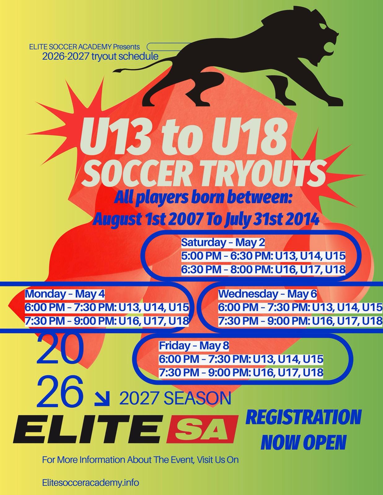 All Kids Born Between August 1st 2007 To July 31st 2014. Dates: U13-U18 May 2nd 4th 6th and 8th.