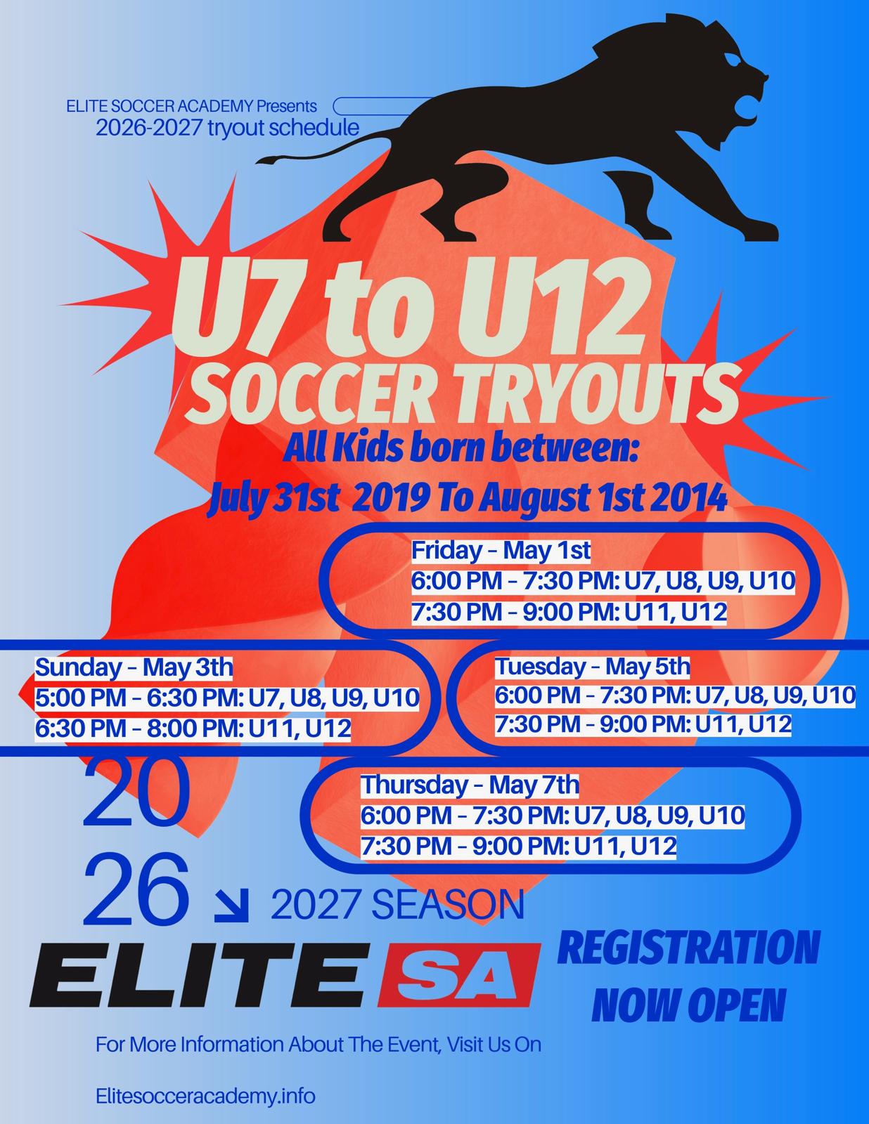 All Kids Born Between July 31st 2019 to August 1st 2014. Dates: U7 – U12 May 1st 3th 5th and 7th.